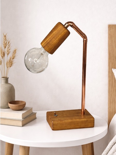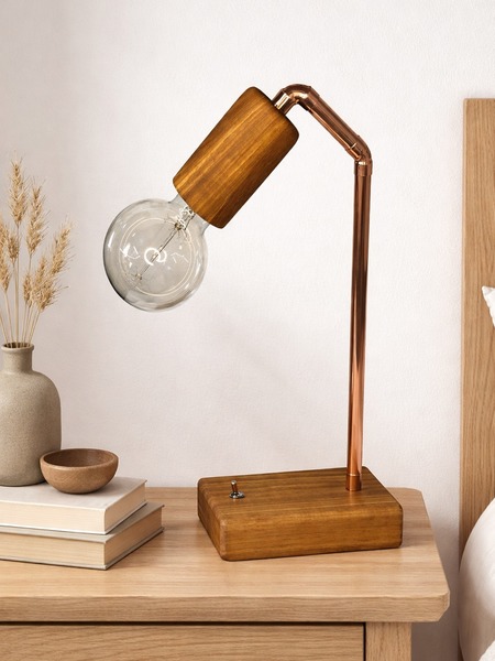 Please note: All our copper lamps are treated with a clear lacquer so will not react to oxygen as raw copper will. Due to the nature of wood, none of the bases look a like and we cannot guarantee a pattern.